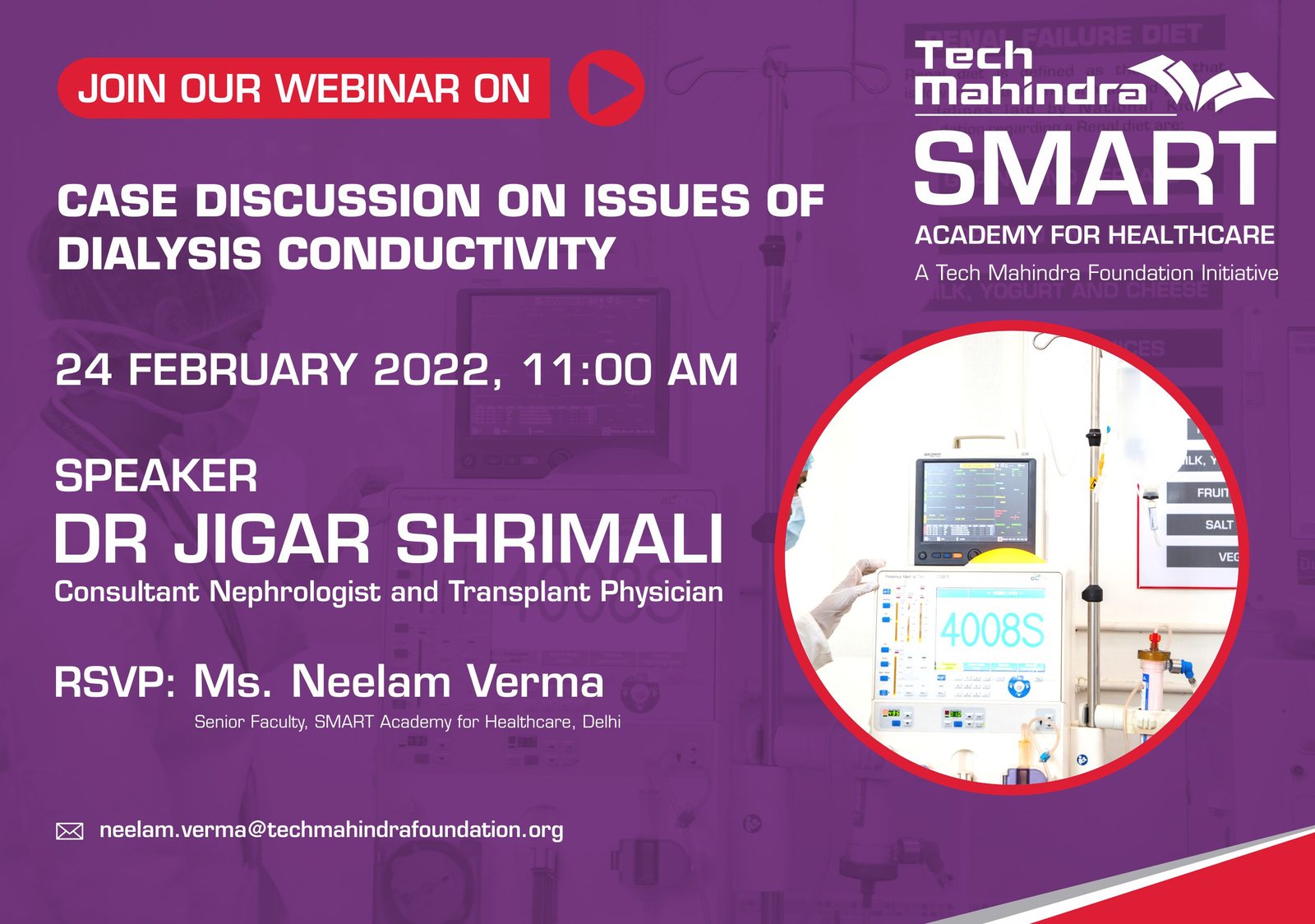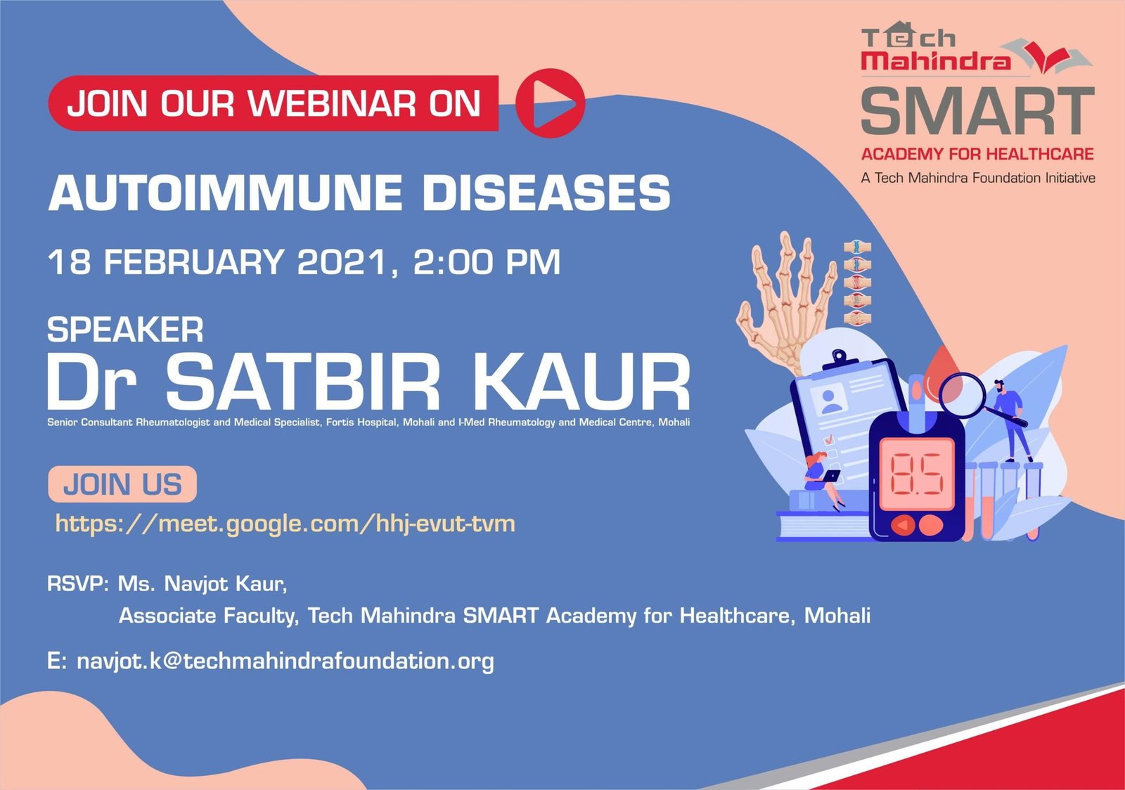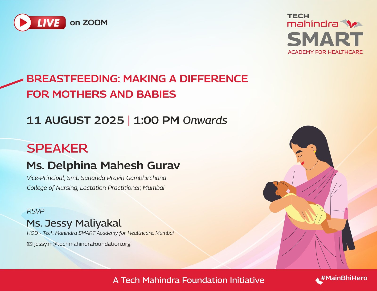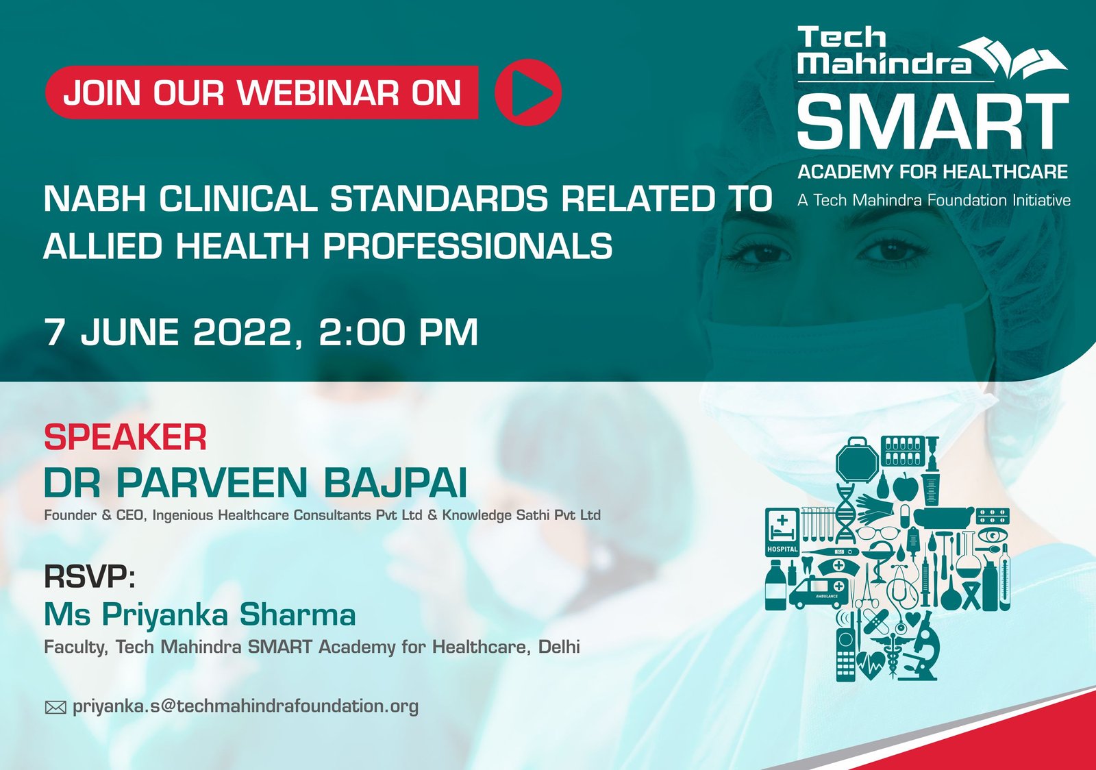 Tech Mahindra SMART Academy for Healthcare, Mumbai, is pleased to host a special webinar titled “Saving Lives Together: The Value of Safe Blood & Donors” for our healthcare students, alumni, trainers, and partners across all academies. The speaker, Dr. Rinku Bhatia, an experienced Blood Bank Officer will highlight the critical role of safe and well-functioning blood banks in saving lives. Dr. Bhatia will delve into the lifesaving impact of timely blood donations, the importance of donor safety, and how an efficient blood system benefits both patients and donors.