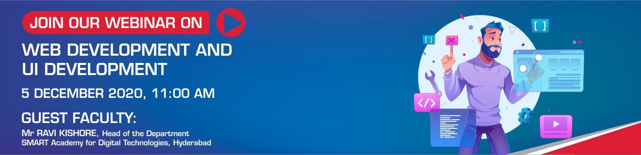 Our SMART Academy for Digital Technologies, Hyderabad is conducting a webinar on Web Development and UI Development Courses with Mr. Ravi Kishore, from Tech Mahindra SMART Academy for Digital Technologies. The online session will help our students to prepare for a promising career in Digital Technology Sector.